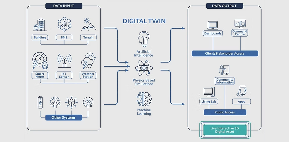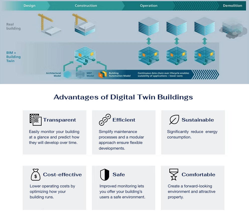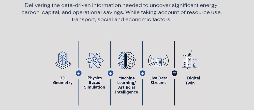 Digital Twins solution goes beyond BIM to create a live Digital Twin, a virtual replica of a physical building and all associated technologies, systems, equipment, and sensors.